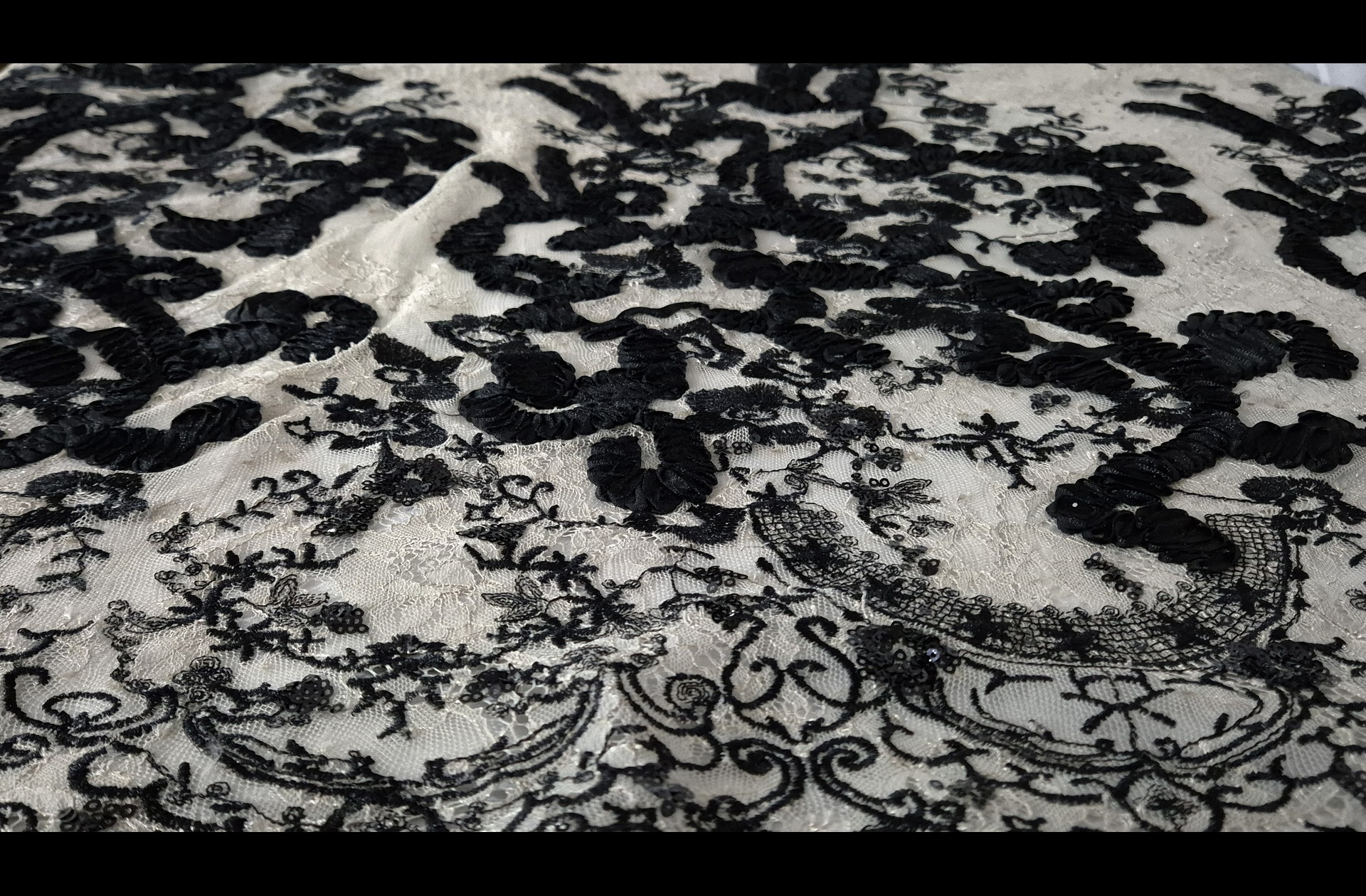 Lace with Black Flowers Polyester Cotton Single-Colored - 130cm
