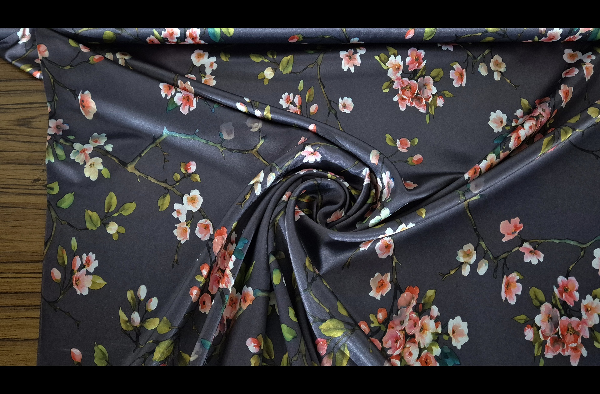 Satin with Flowers Polyester Elast Multi-Colored - 150cm