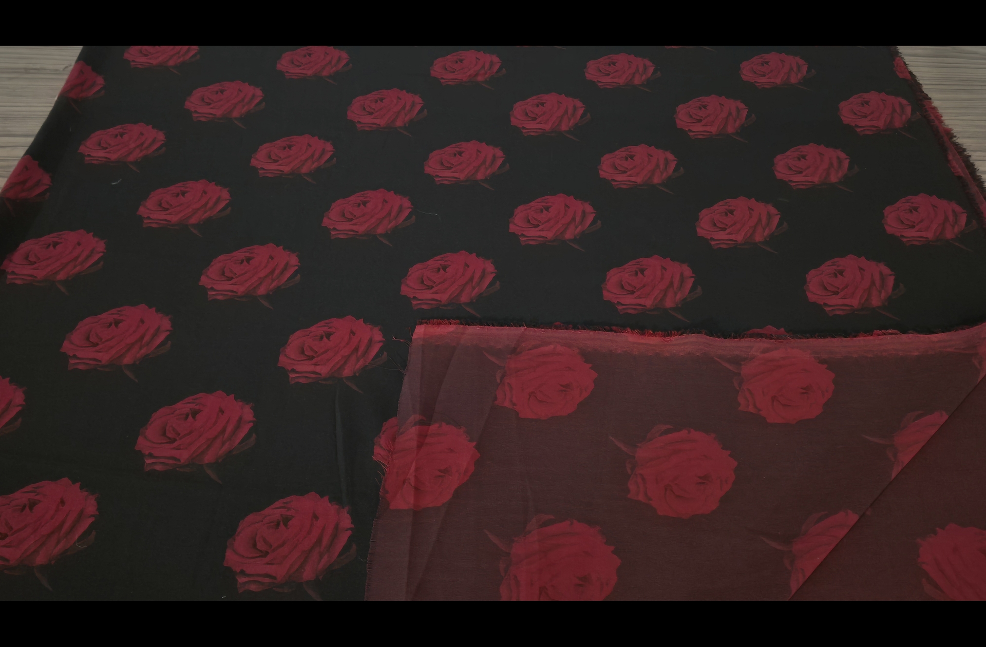 Muslin with Black Roses Polyester Multi-Colored - 140cm