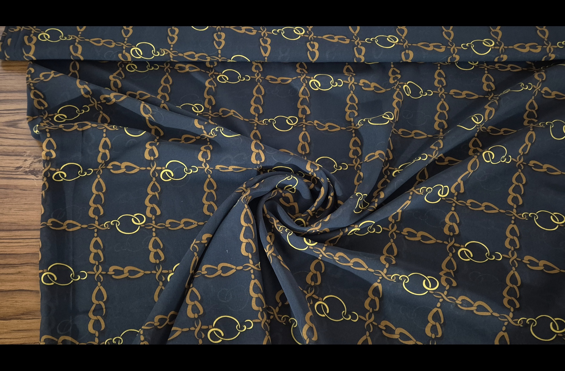 Muslin with Golden Chains Polyester Elast Multi-Colored - 140cm