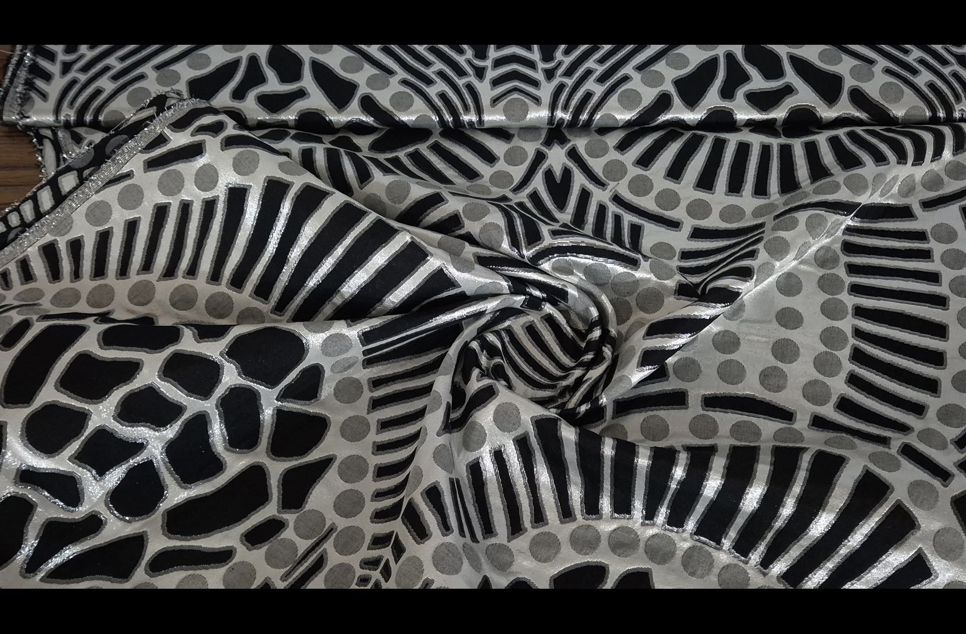 Brocade with Silver Lines & Polka Dots Polyester Cotton Multi-Colored - 130cm