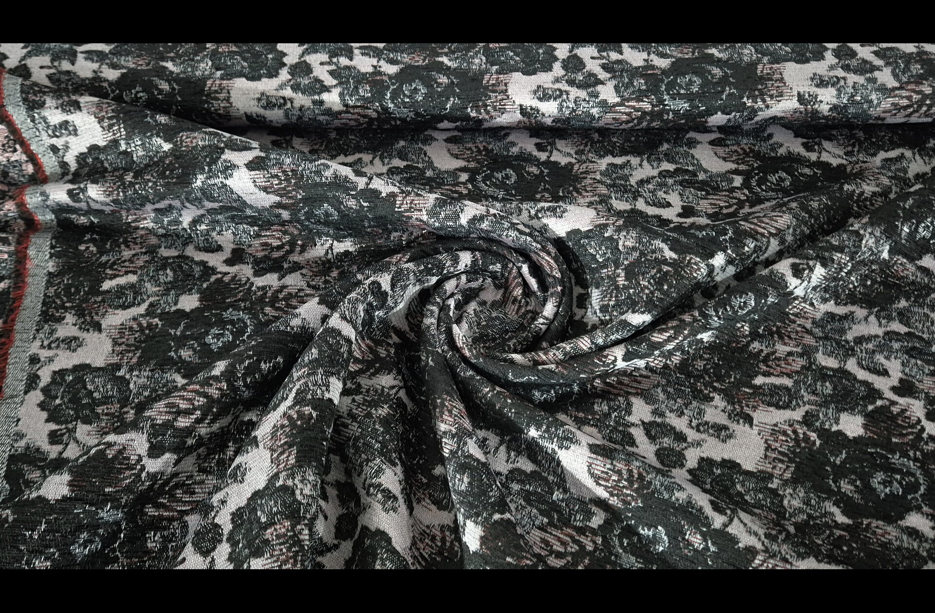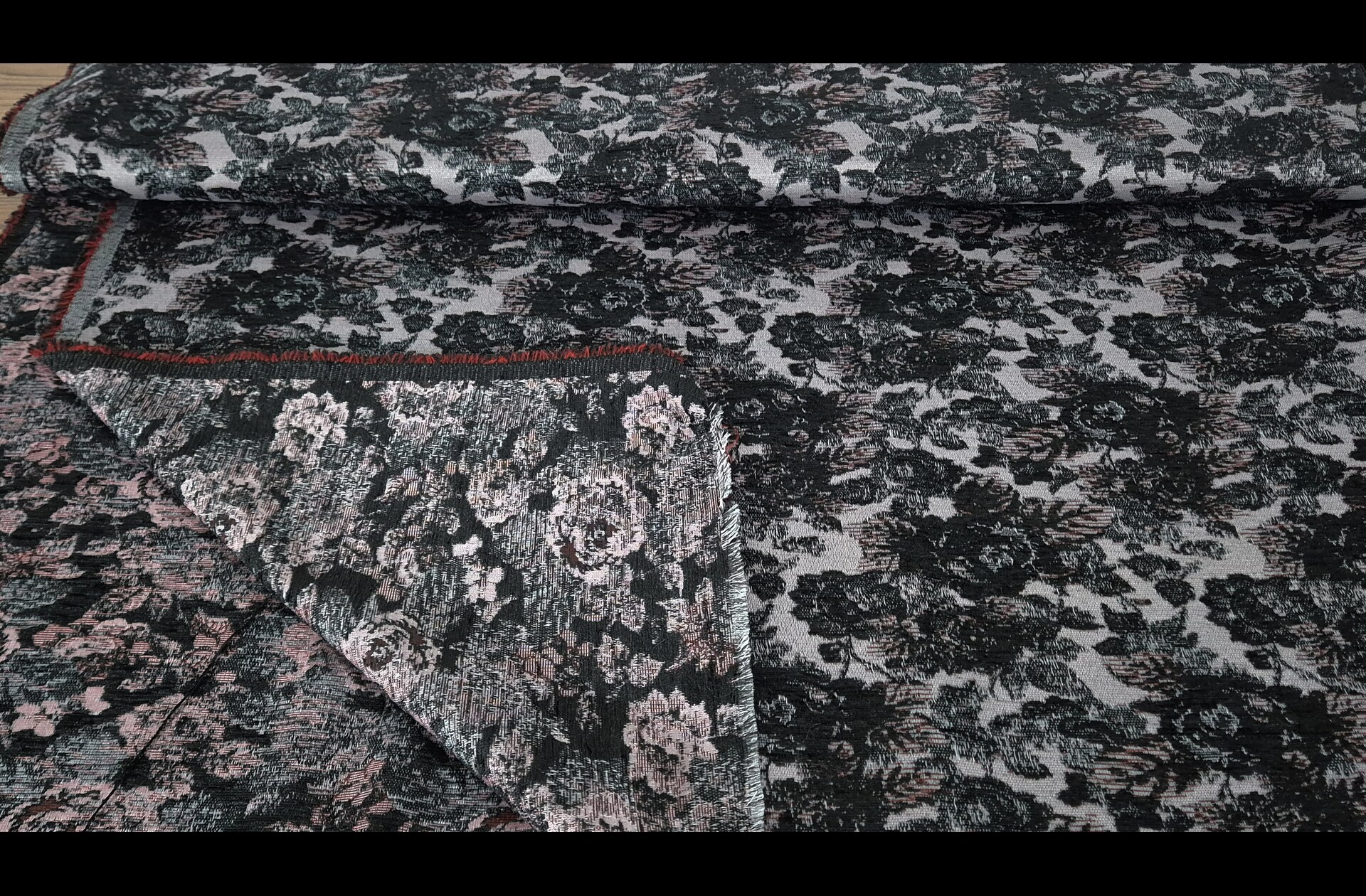 Jacquard with Red Flower Polyester Multi-Colored - 150cm