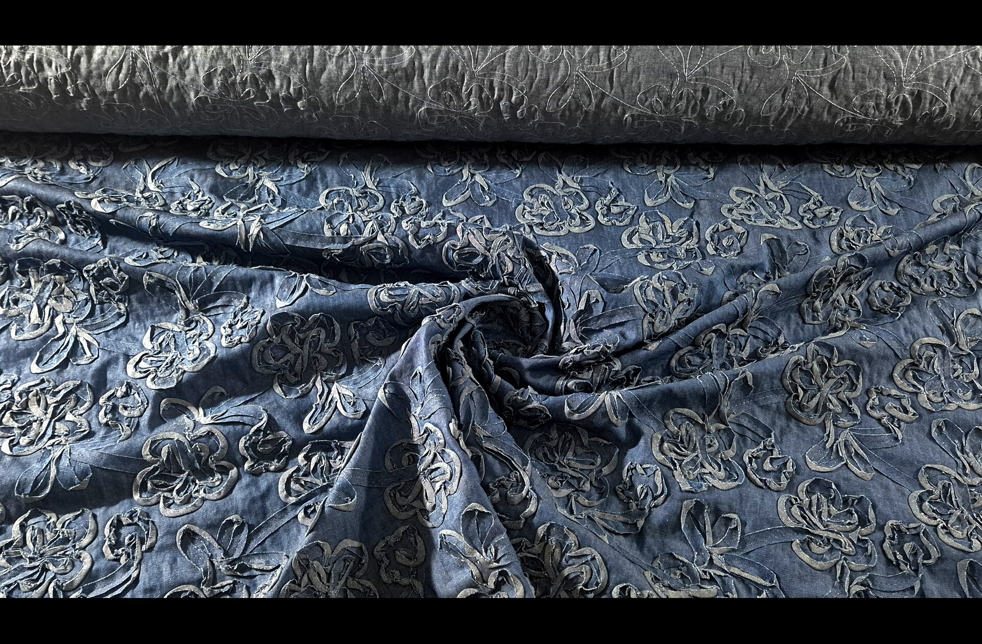 Denim with Knitted Flowers 100% Cotton Multi-Colored - 150cm