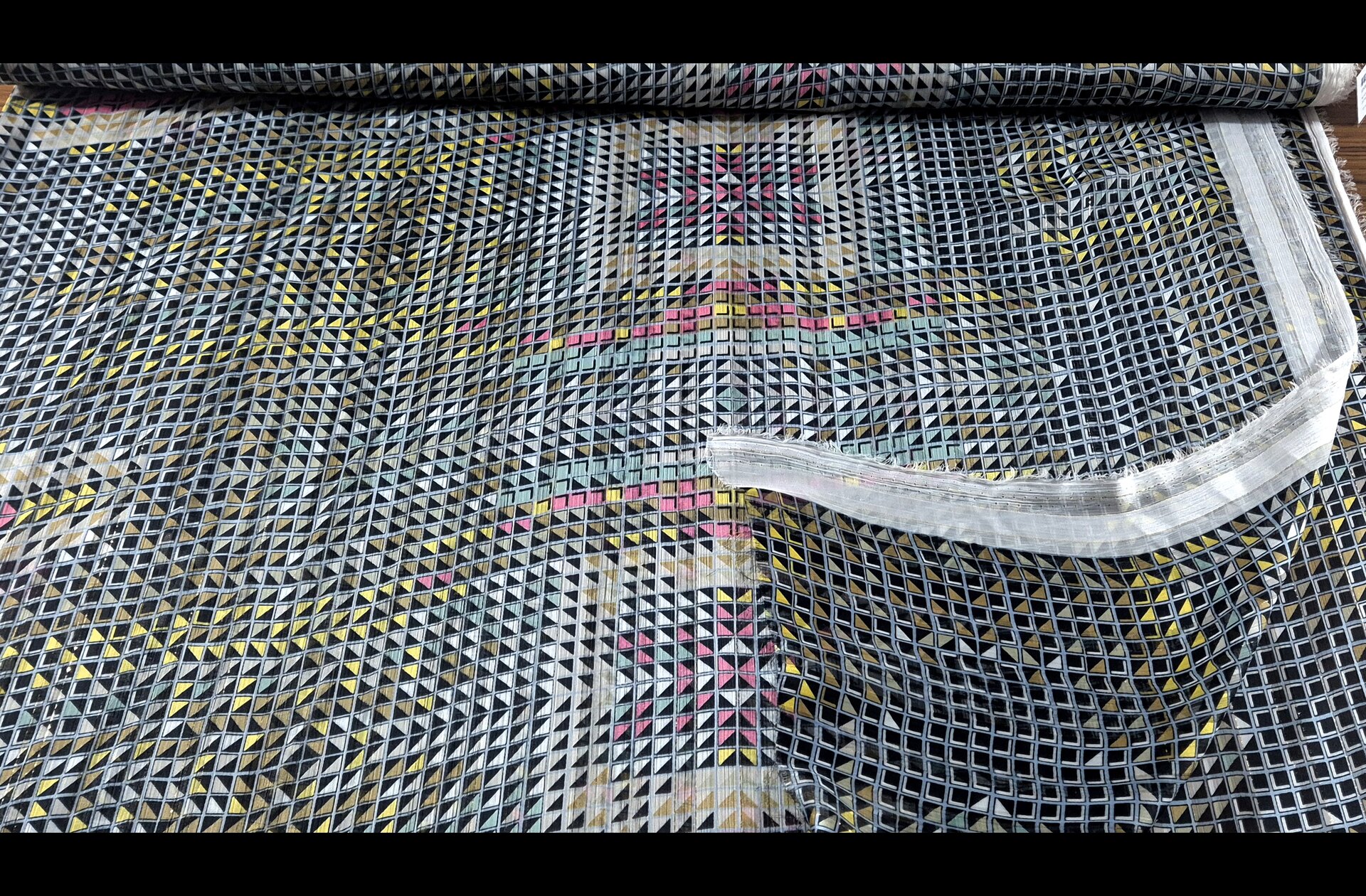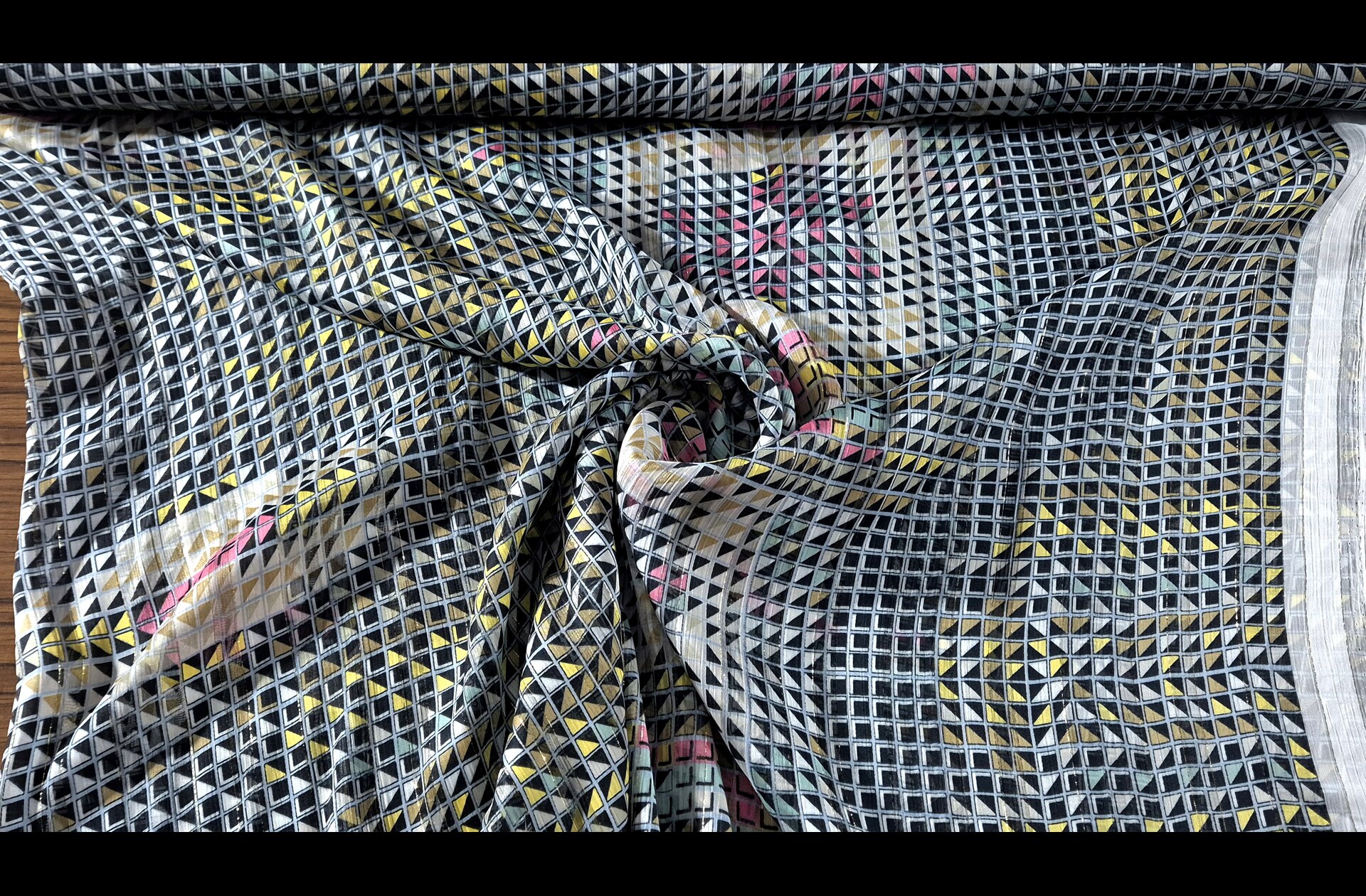 Muslin with Geometrical Squares & Golden Threads Polyester Multi-Colored - 150cm