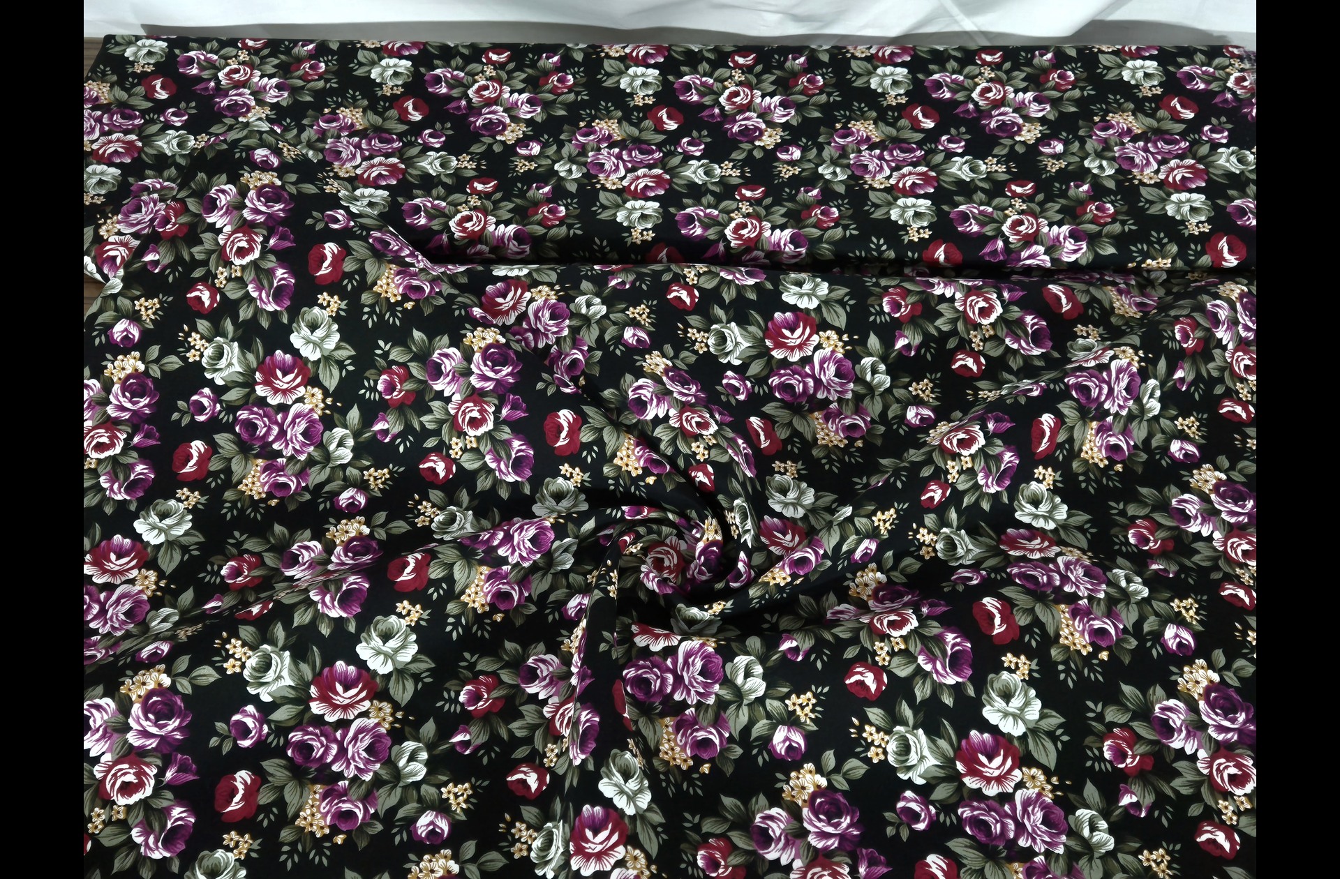 Poplin with Purple Roses in Bouquets Cotton Multi-Colored - 150cm